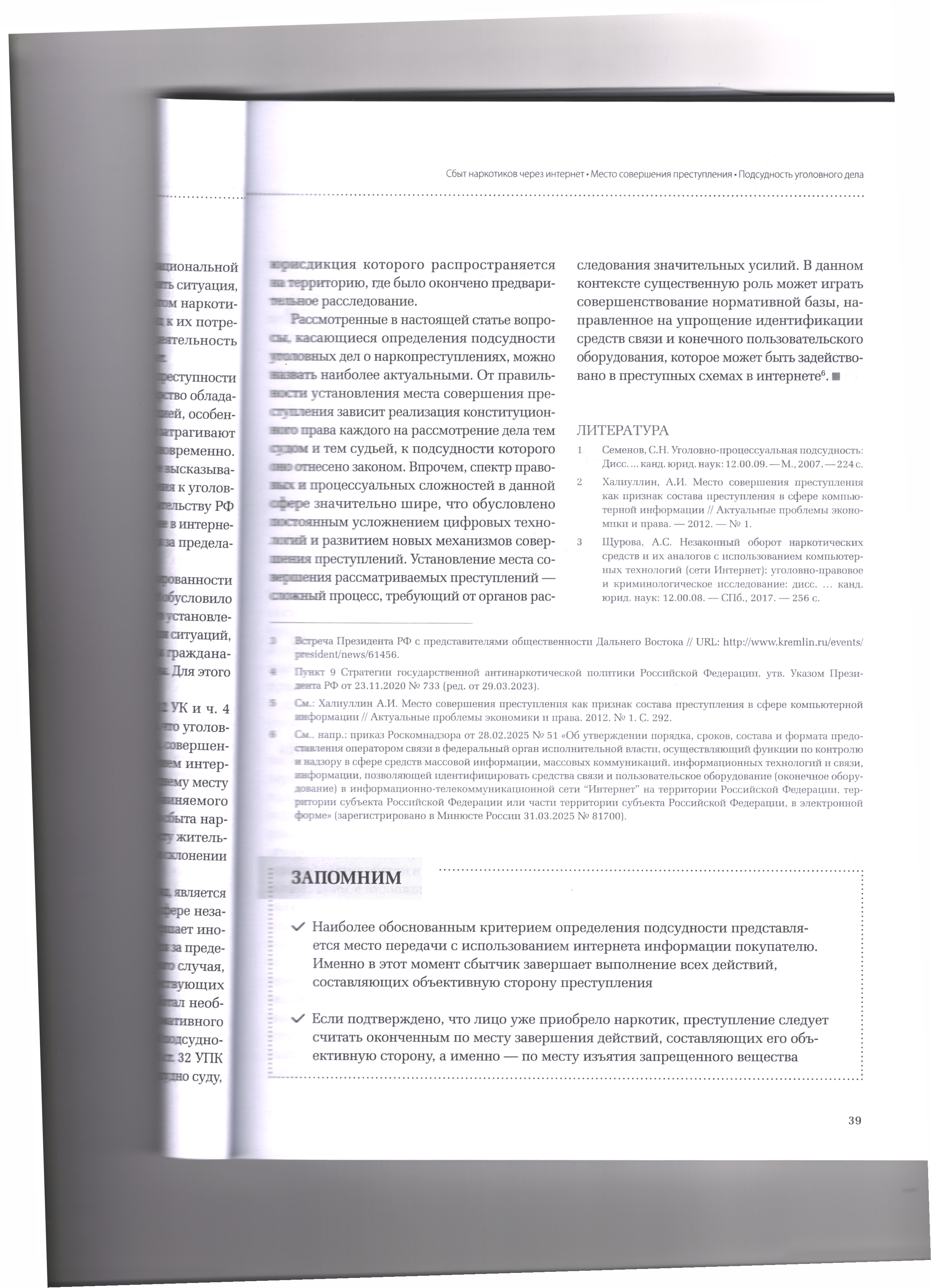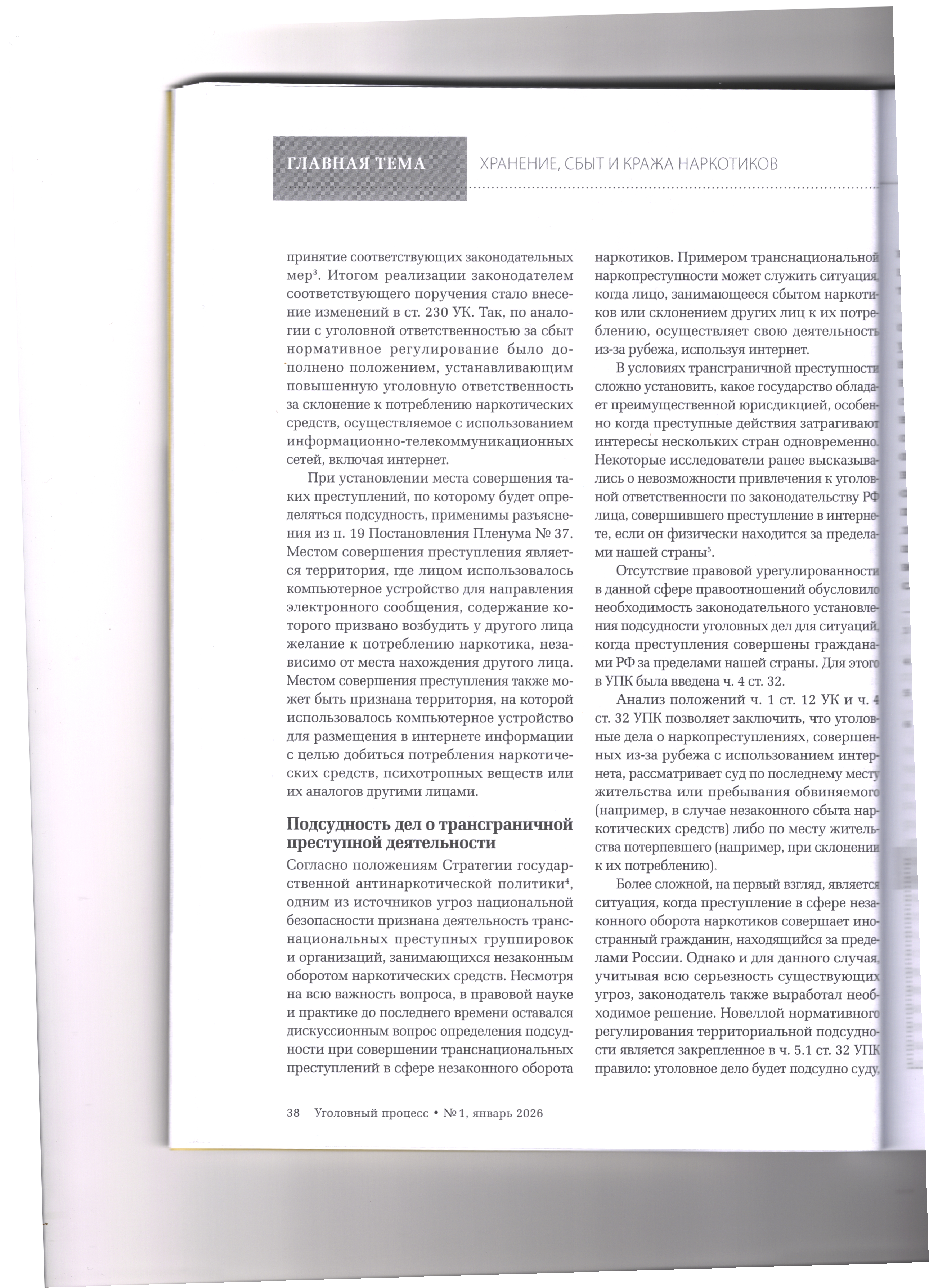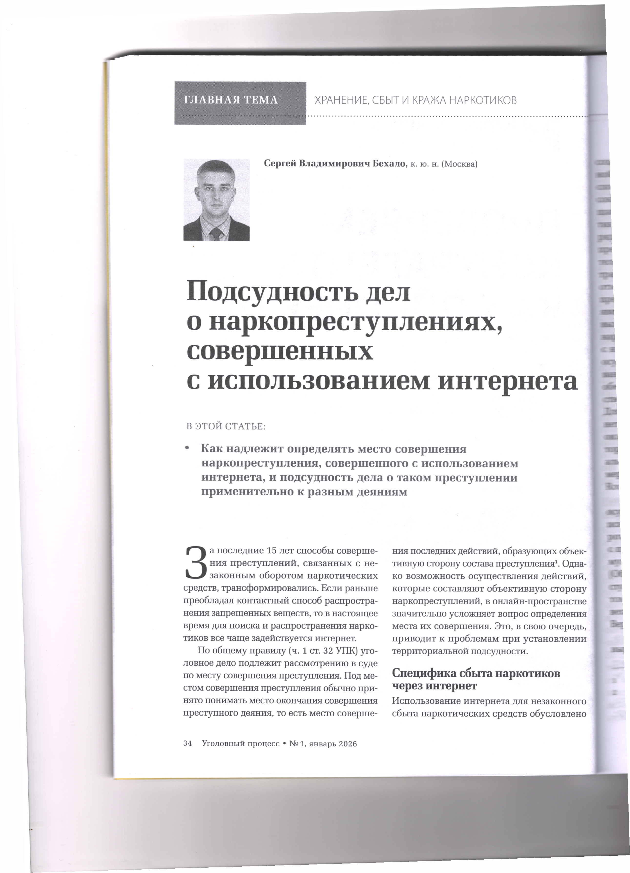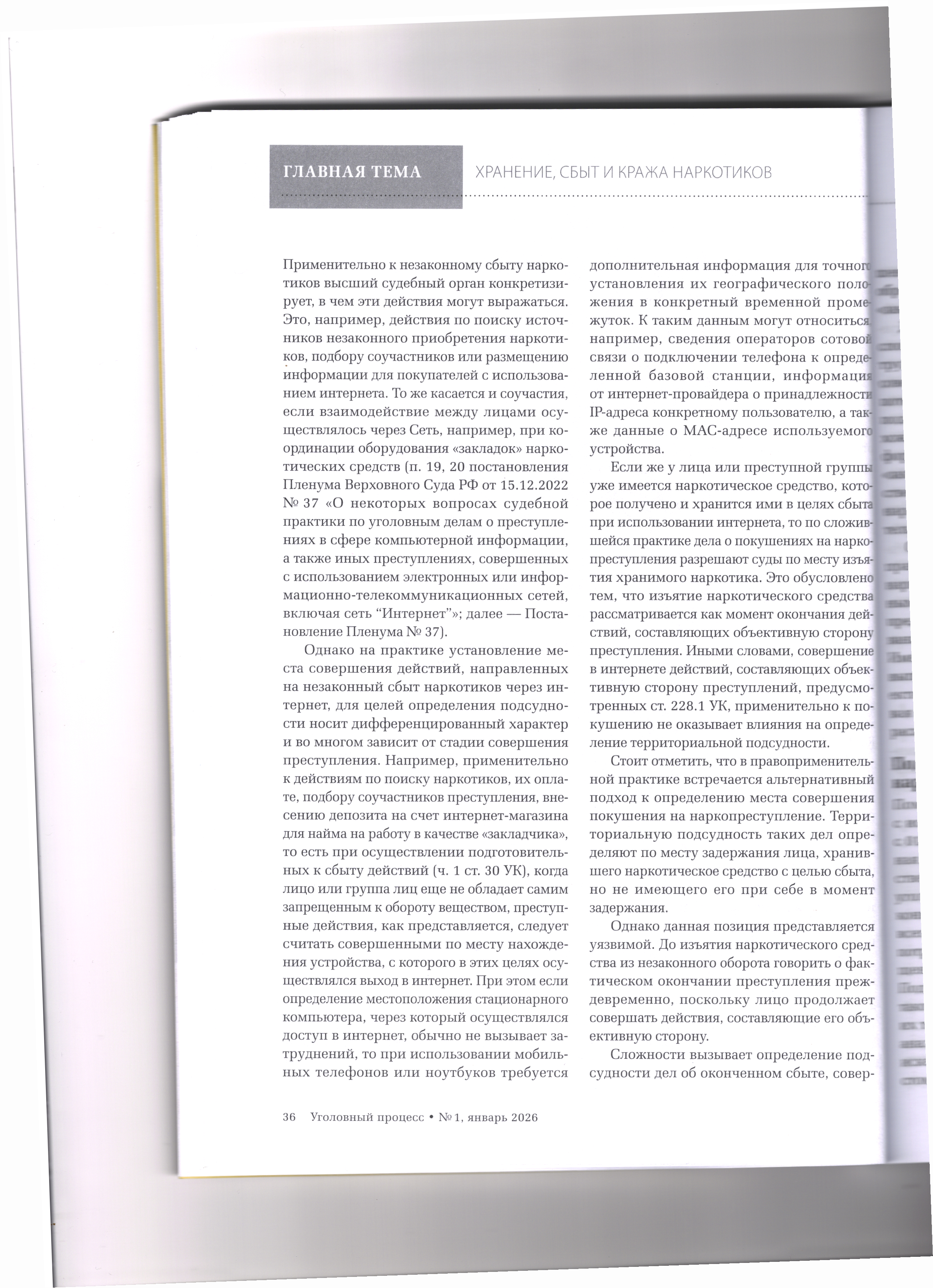 версия для печати 16.01.2026 Подсудность дел о наркопреступлениях, совершенных с использованием интернета Журнал «Уголовный процесс» №1/2026