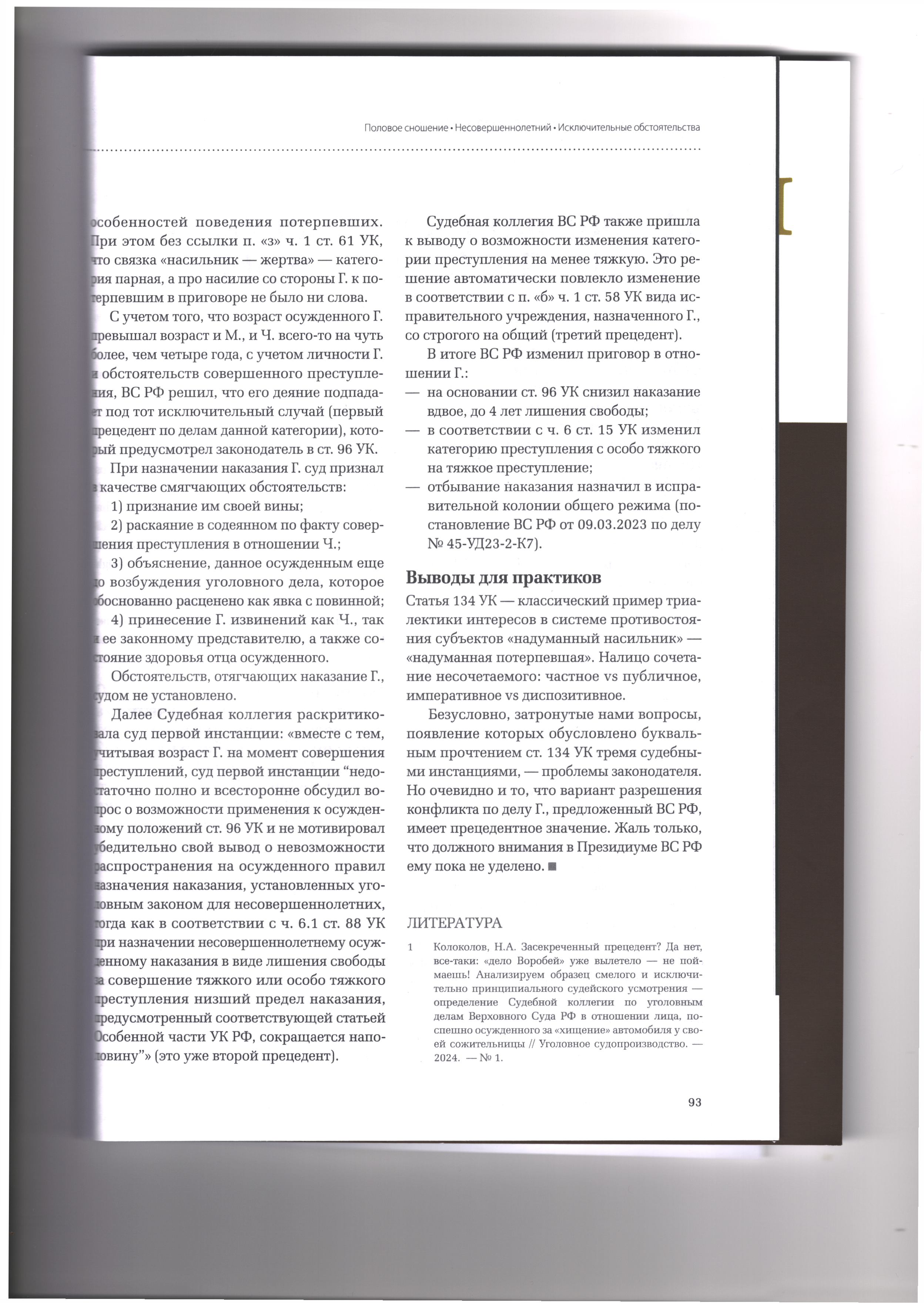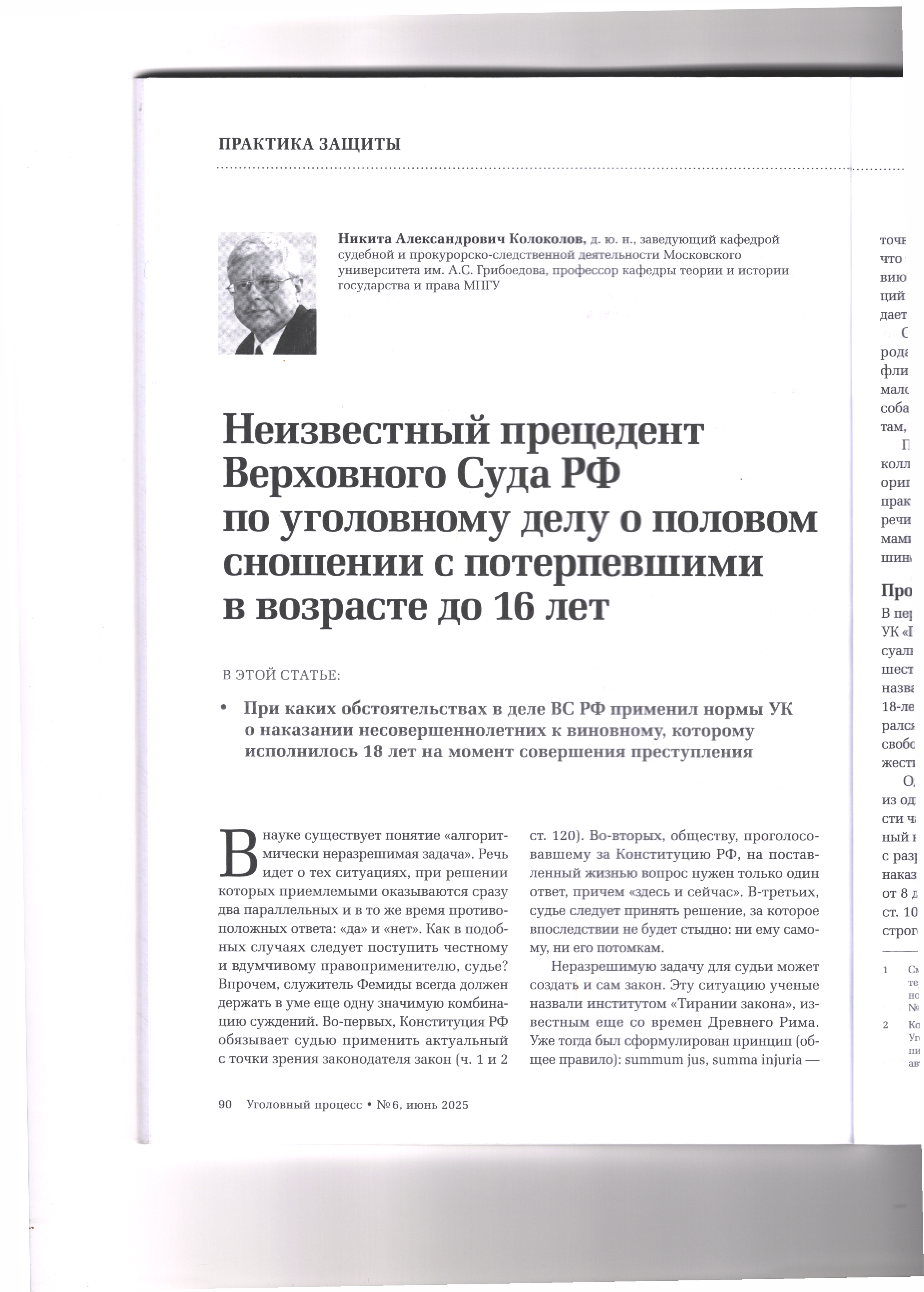 Коллегия адвокатов-ученых›Состав коллегии›Личный кабинет›16.09.2025 Неизвестный прецедент Верховного Суда РФ по уголовному делу о половом сношении с потерпевшими в возрасте до 16 лет Журнал «Уголовный процесс» №6/2025