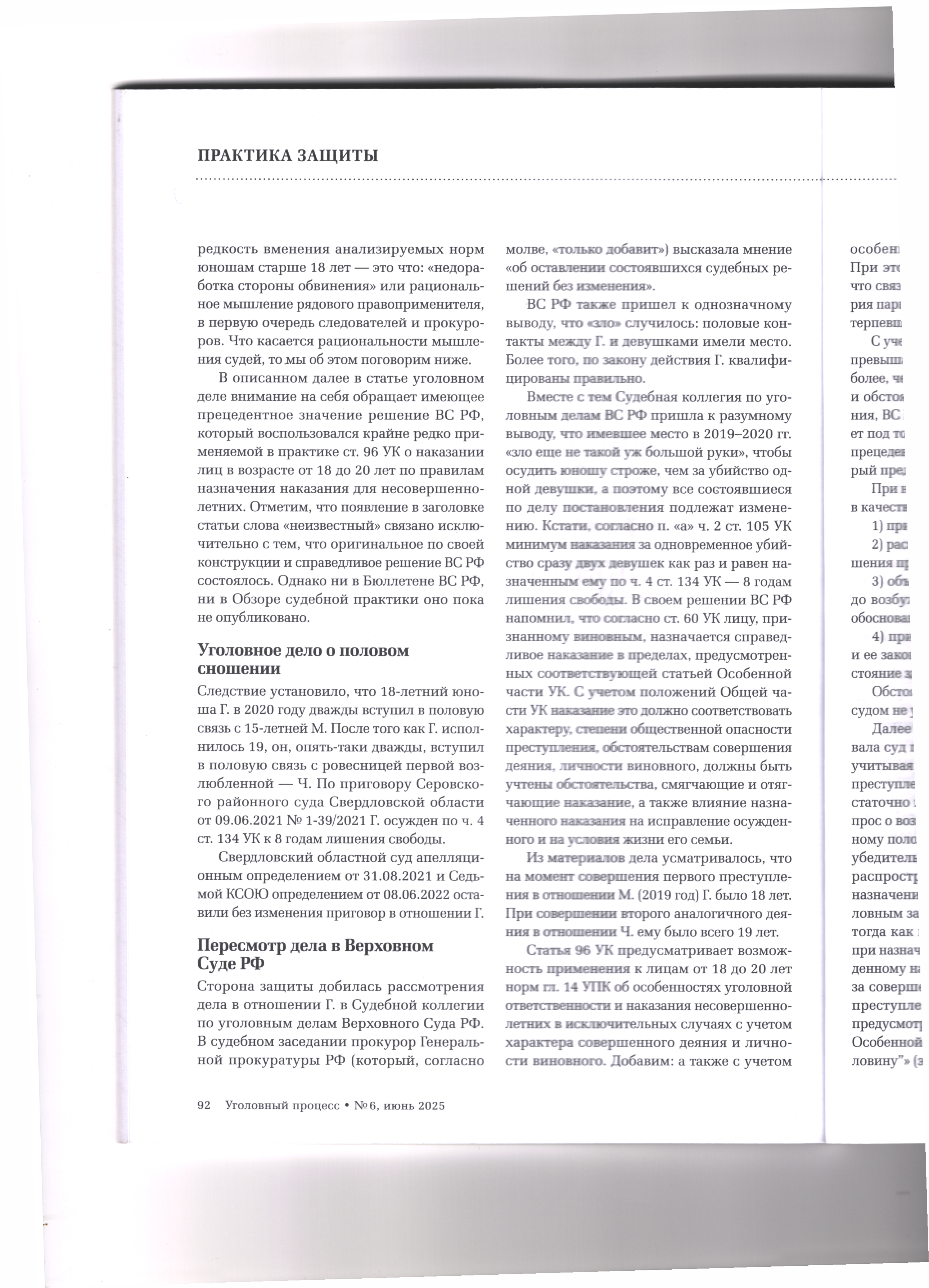 16.09.2025 Неизвестный прецедент Верховного Суда РФ по уголовному делу о половом сношении с потерпевшими в возрасте до 16 лет Журнал «Уголовный процесс» №6/2025