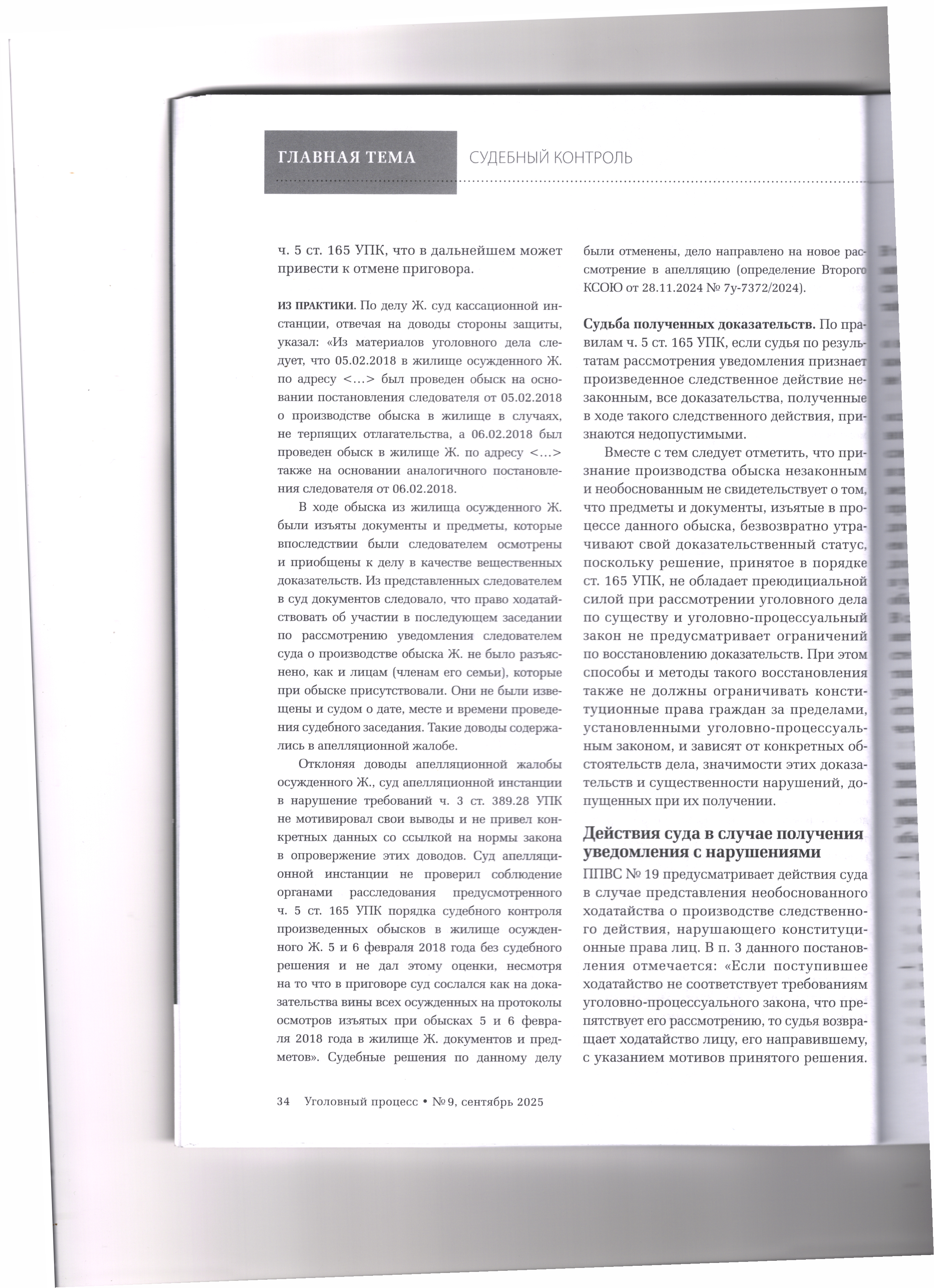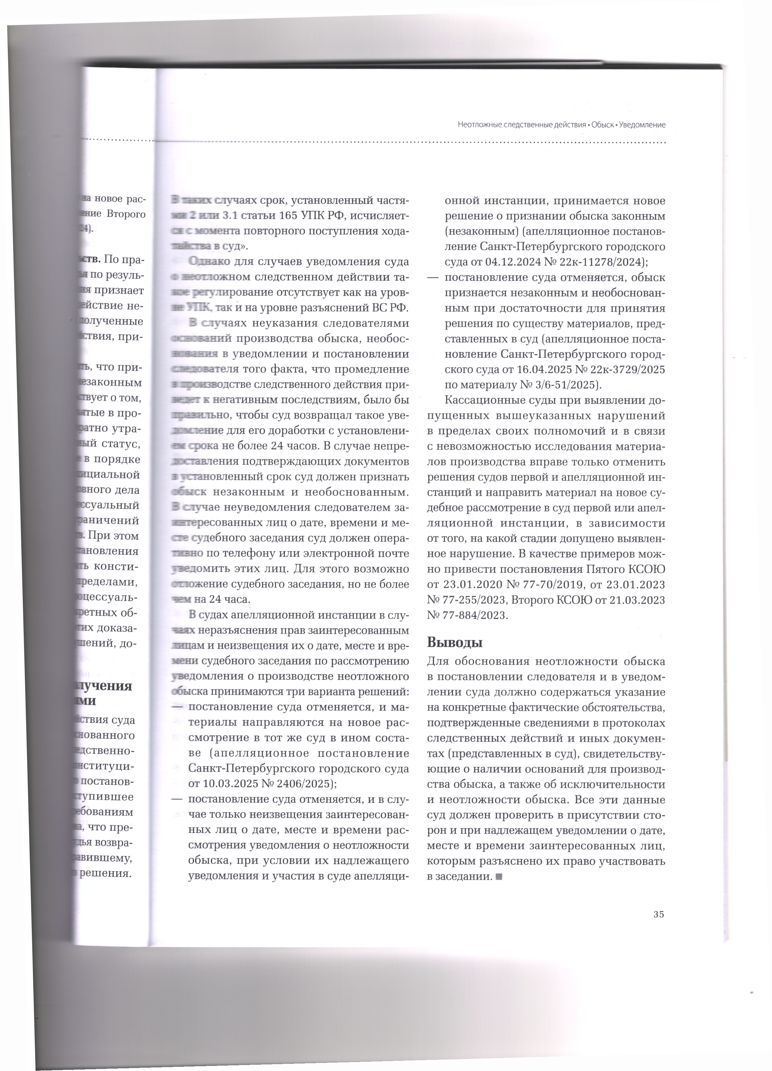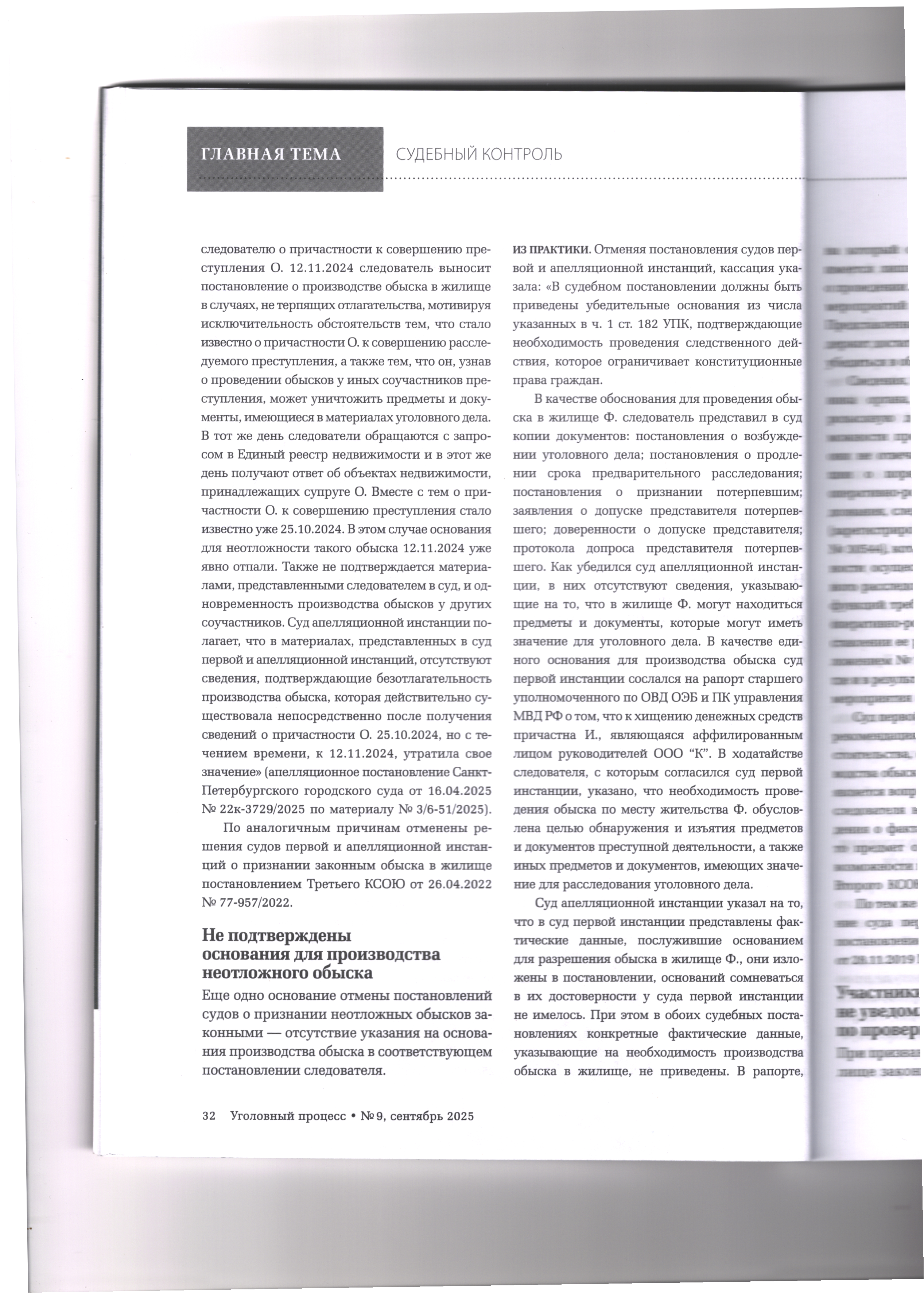 18.11.2025 Неотложный обыск. Основные ошибки при проверке судом его законности Журнал «Уголовный процесс» №9/2025