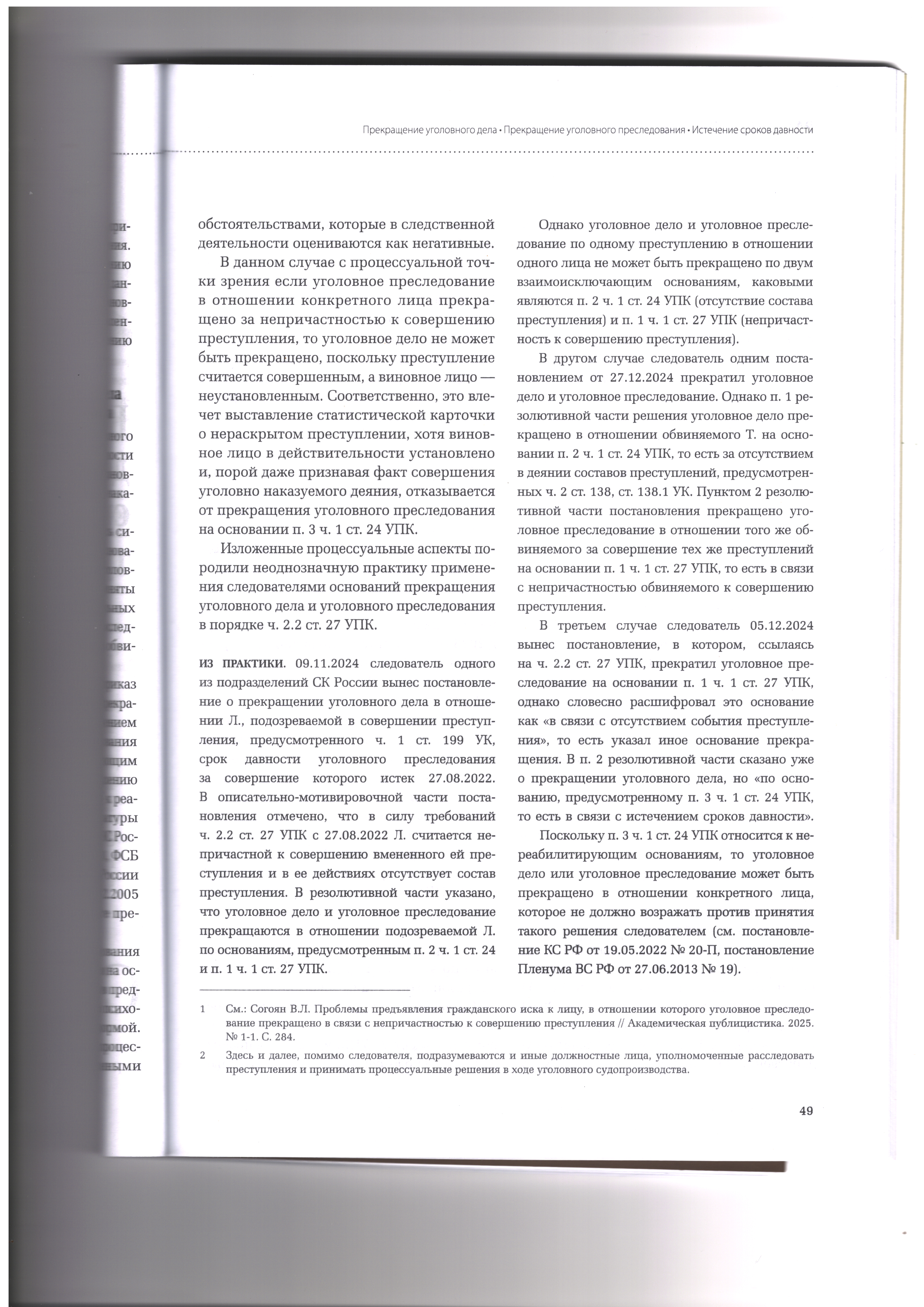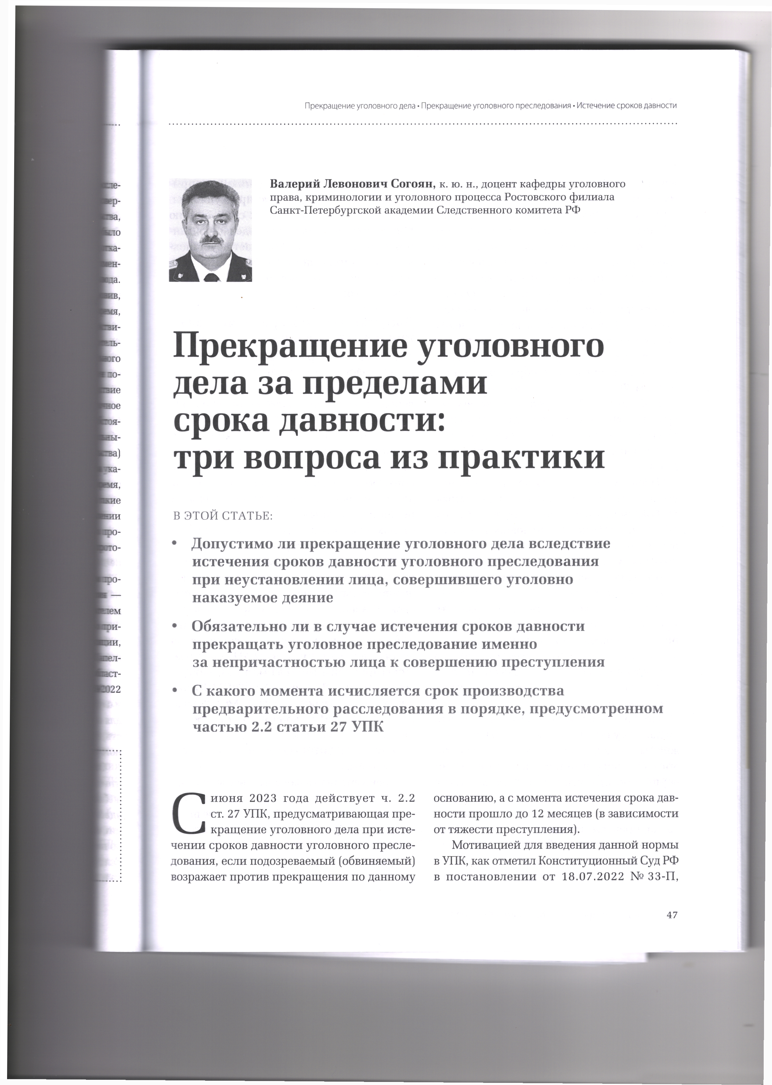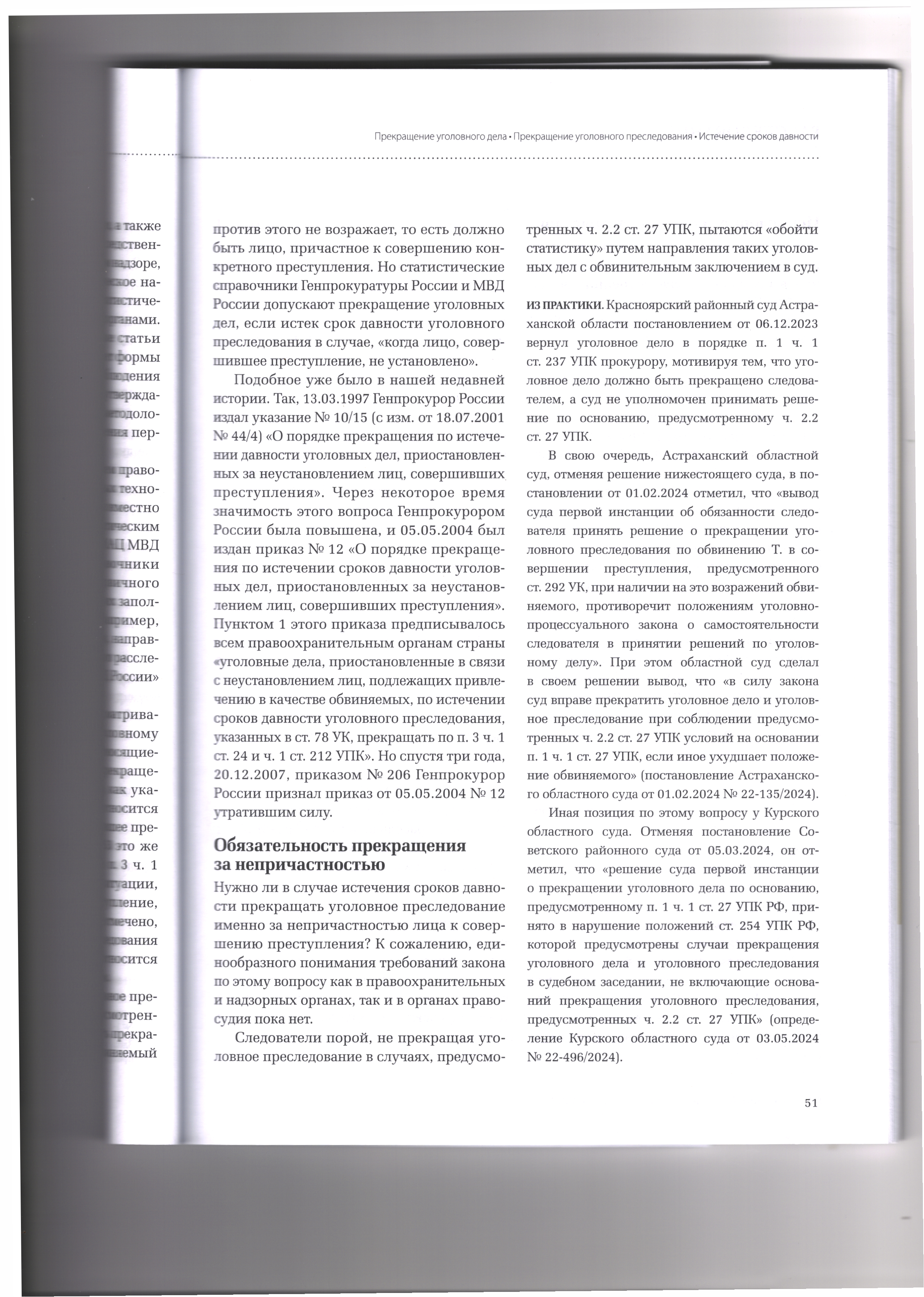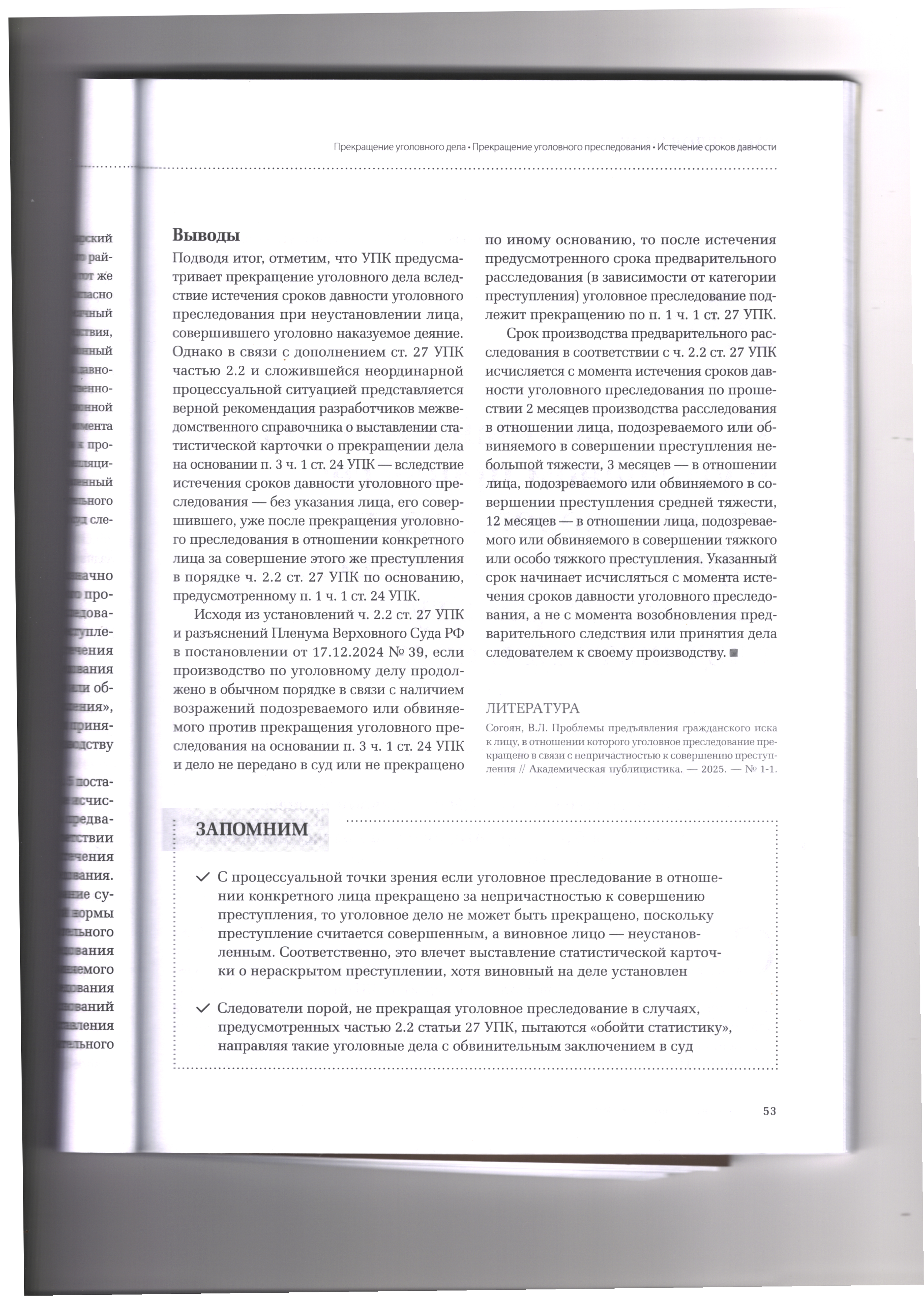 версия для печати 18.11.2025 Прекращение уголовного дела за пределами срока давности:три вопроса из практики Журнал «Уголовный процесс» №9/2025