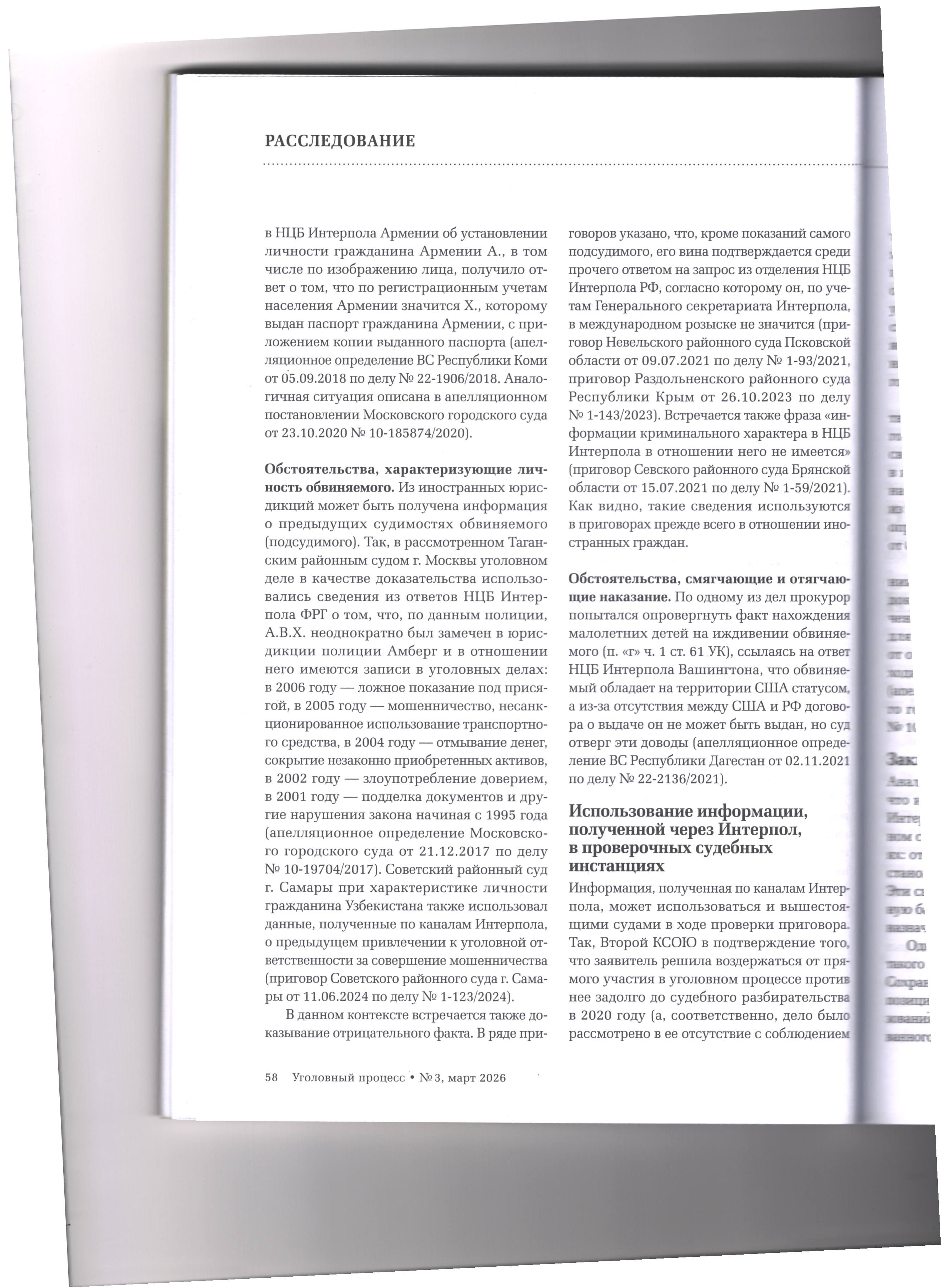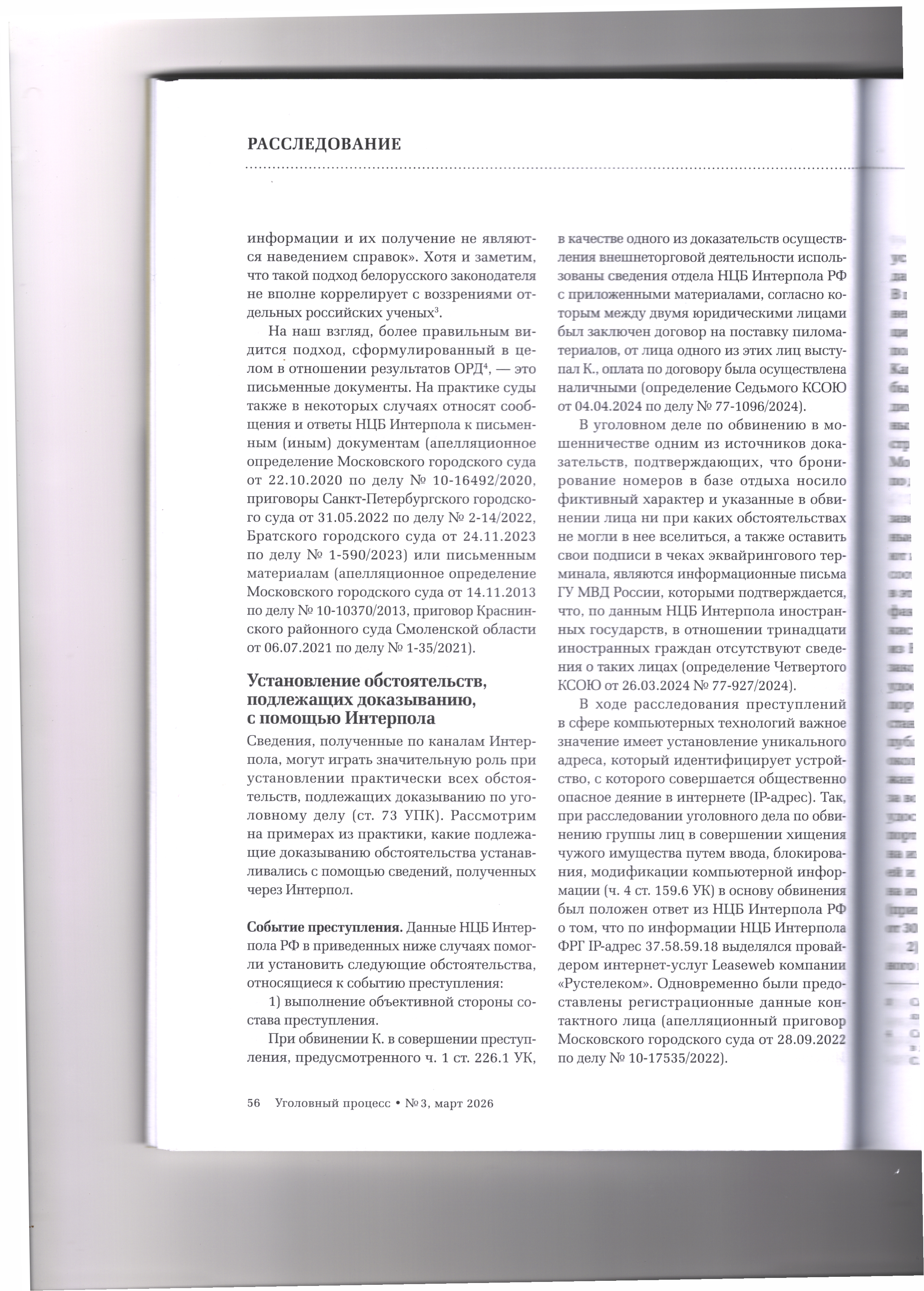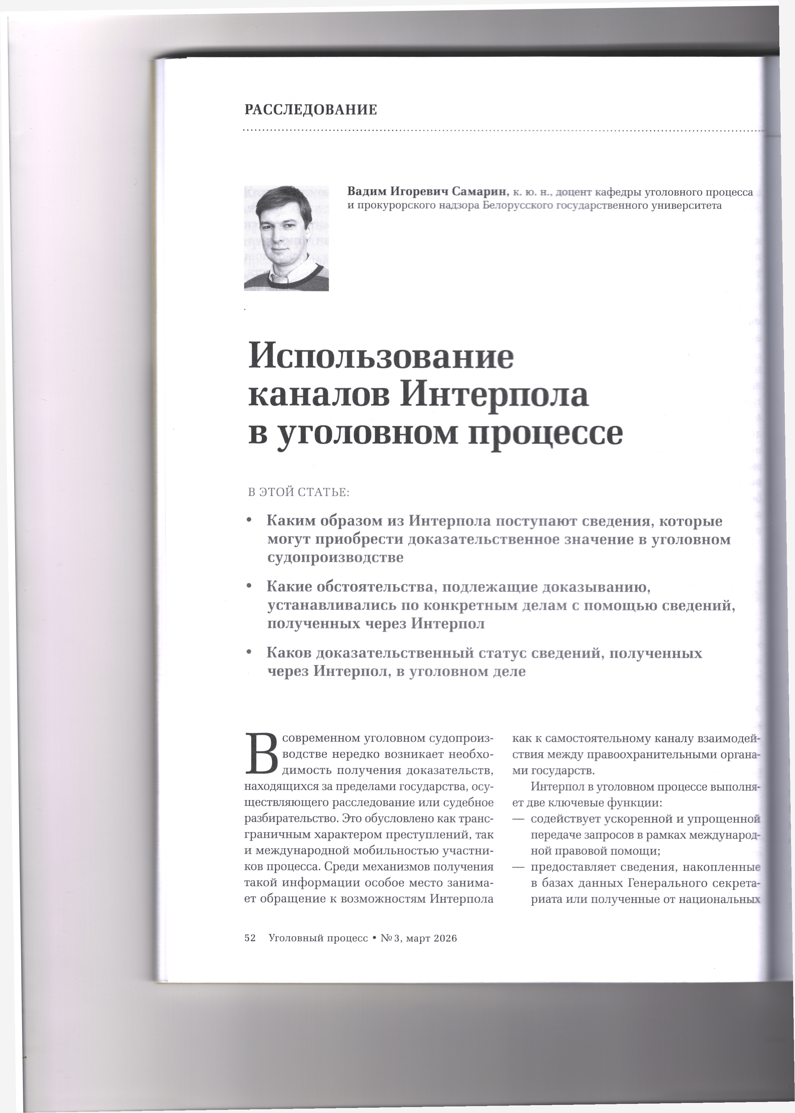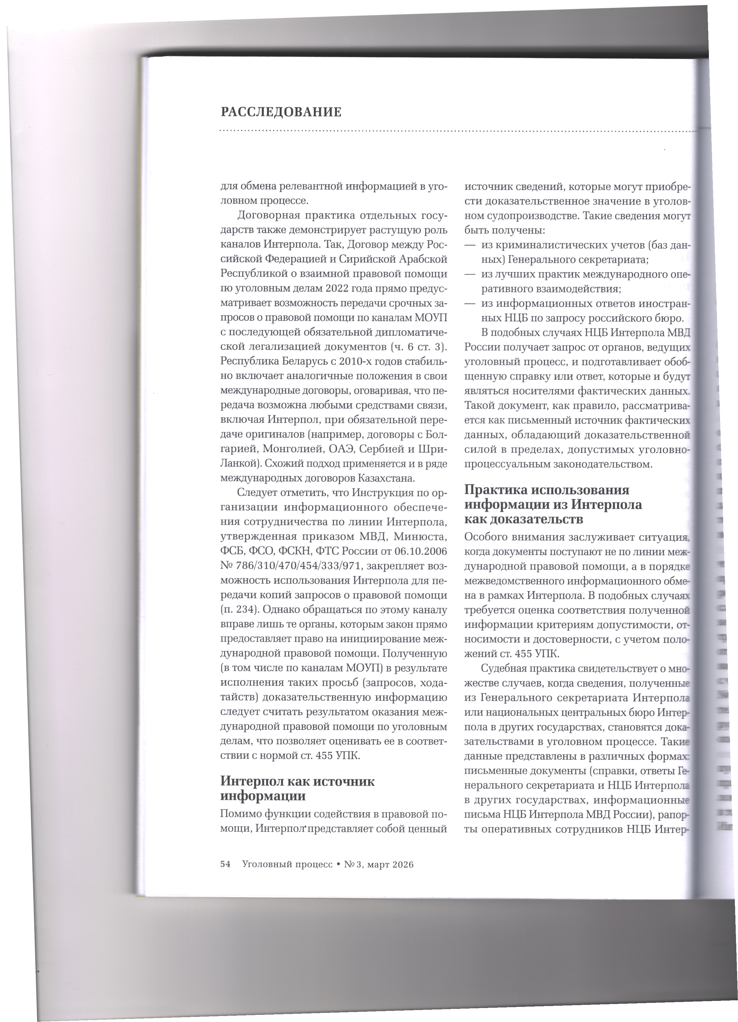 версия для печати 24.04.2026 использование каналов Интерпола в уголовном процессе Журнал «Уголовный процесс» №3/2026