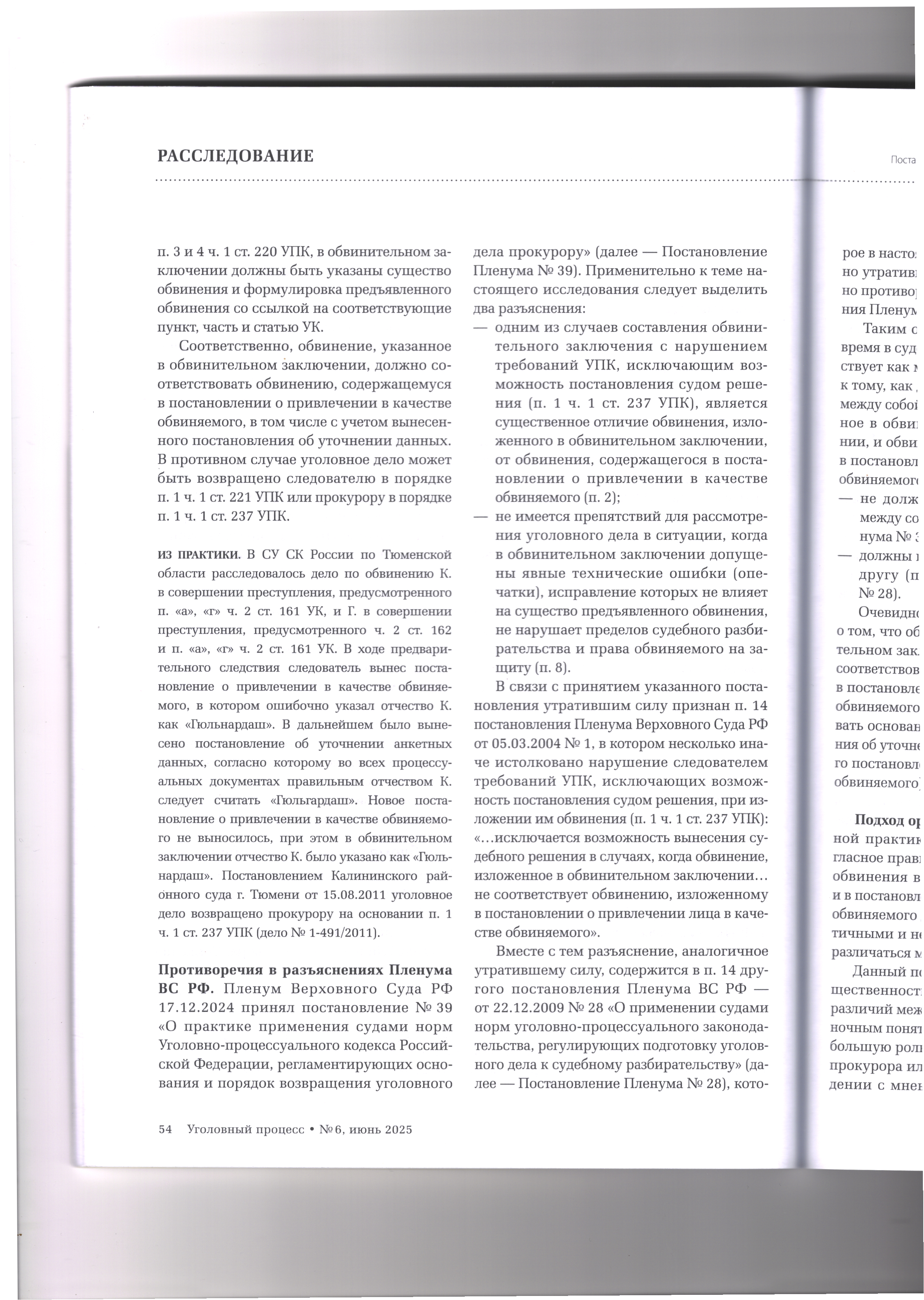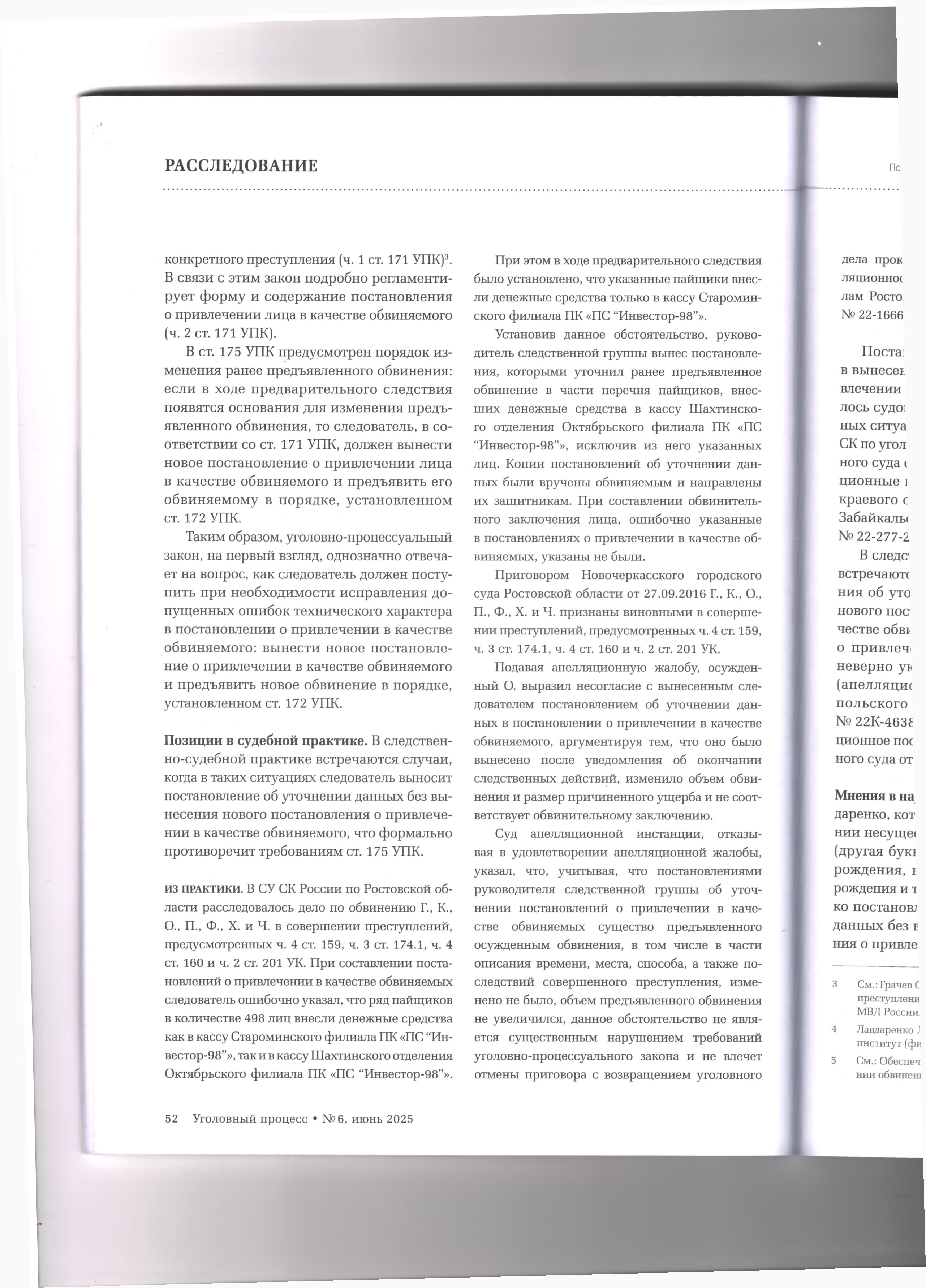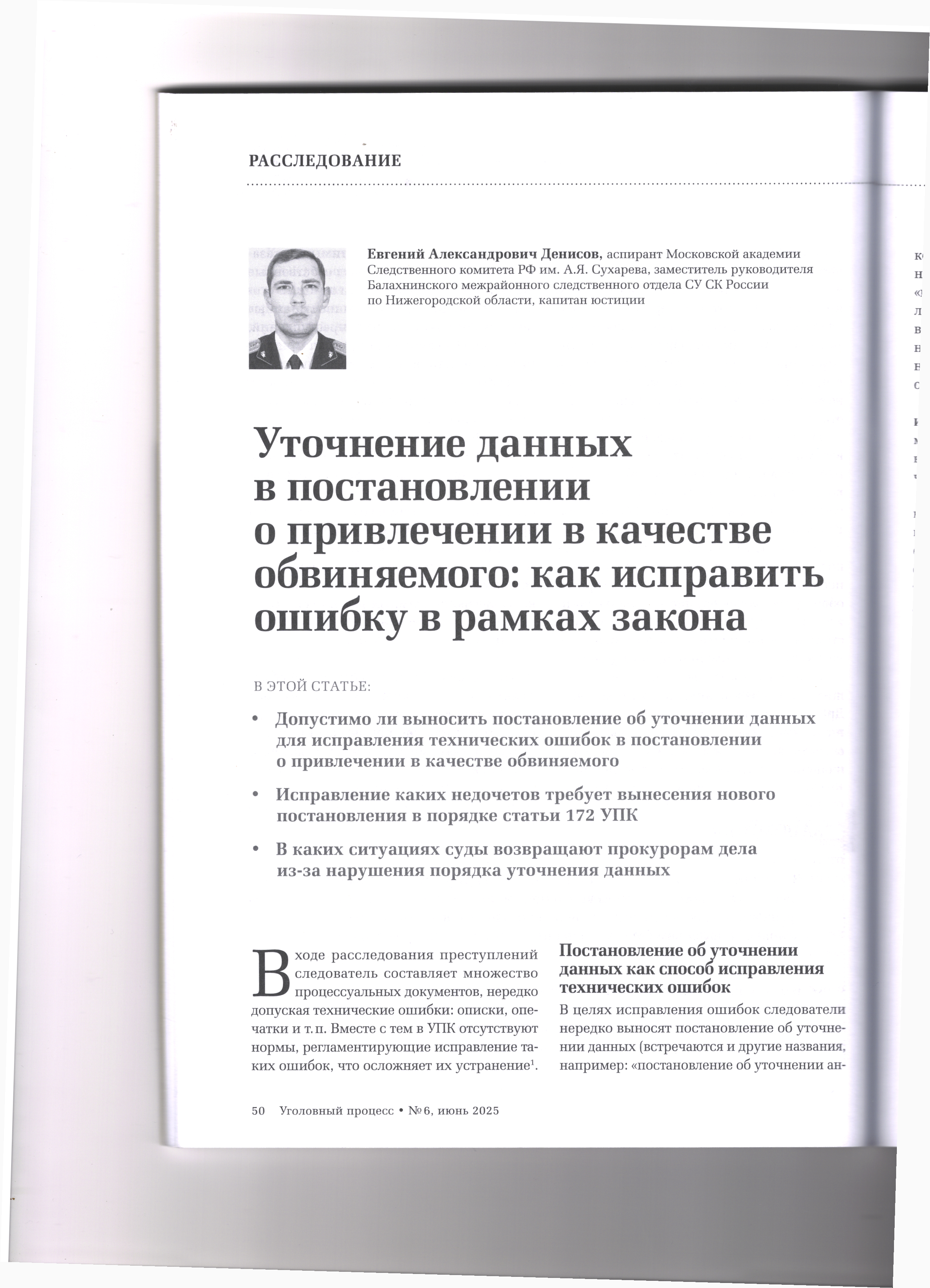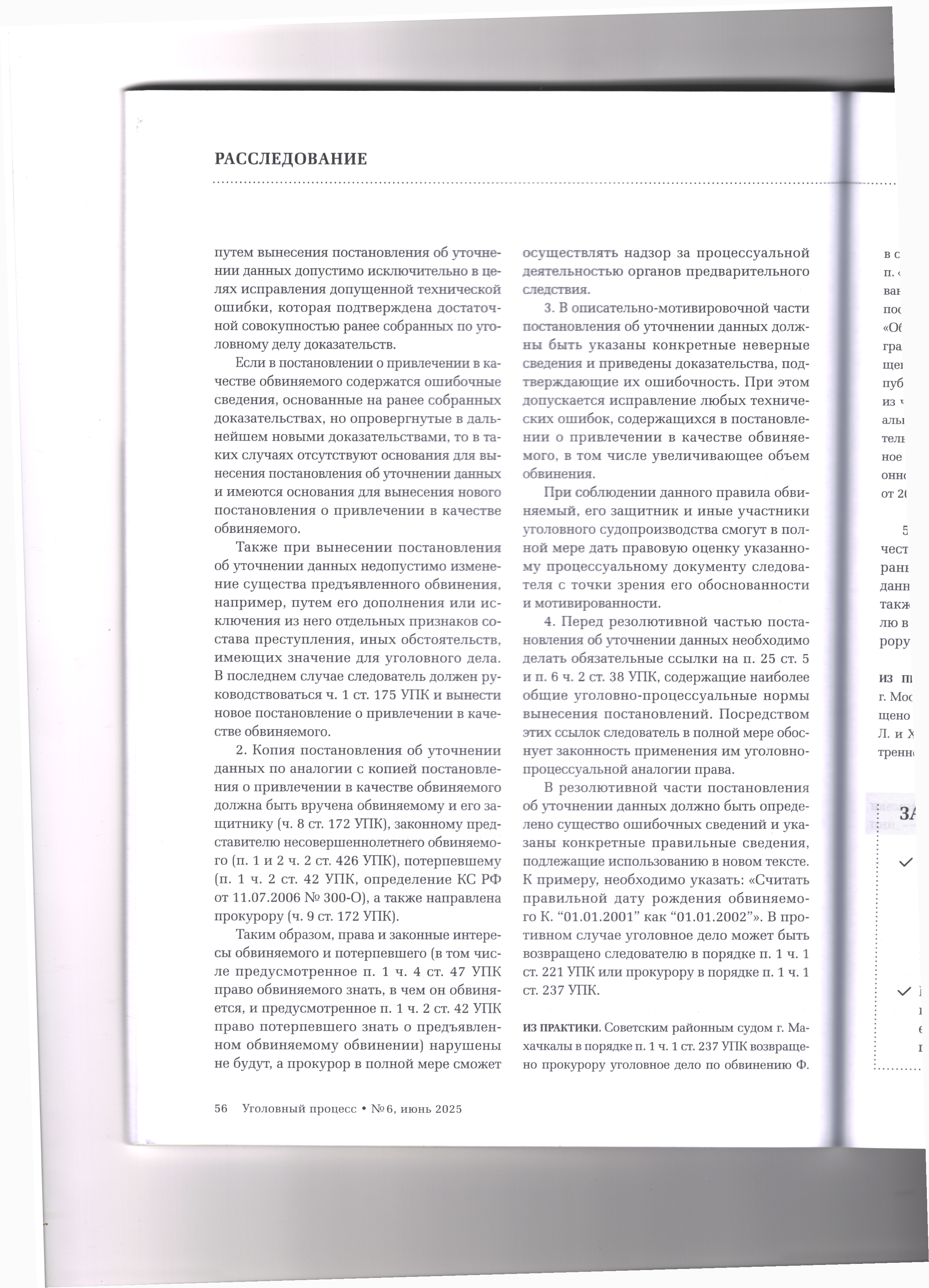 28.08.2025 Уточнение данных в постановлении о привлечении в качестве обвиняемого:как исправить ошибку в рамках закона Журнал «Уголовный процесс» №6/2025