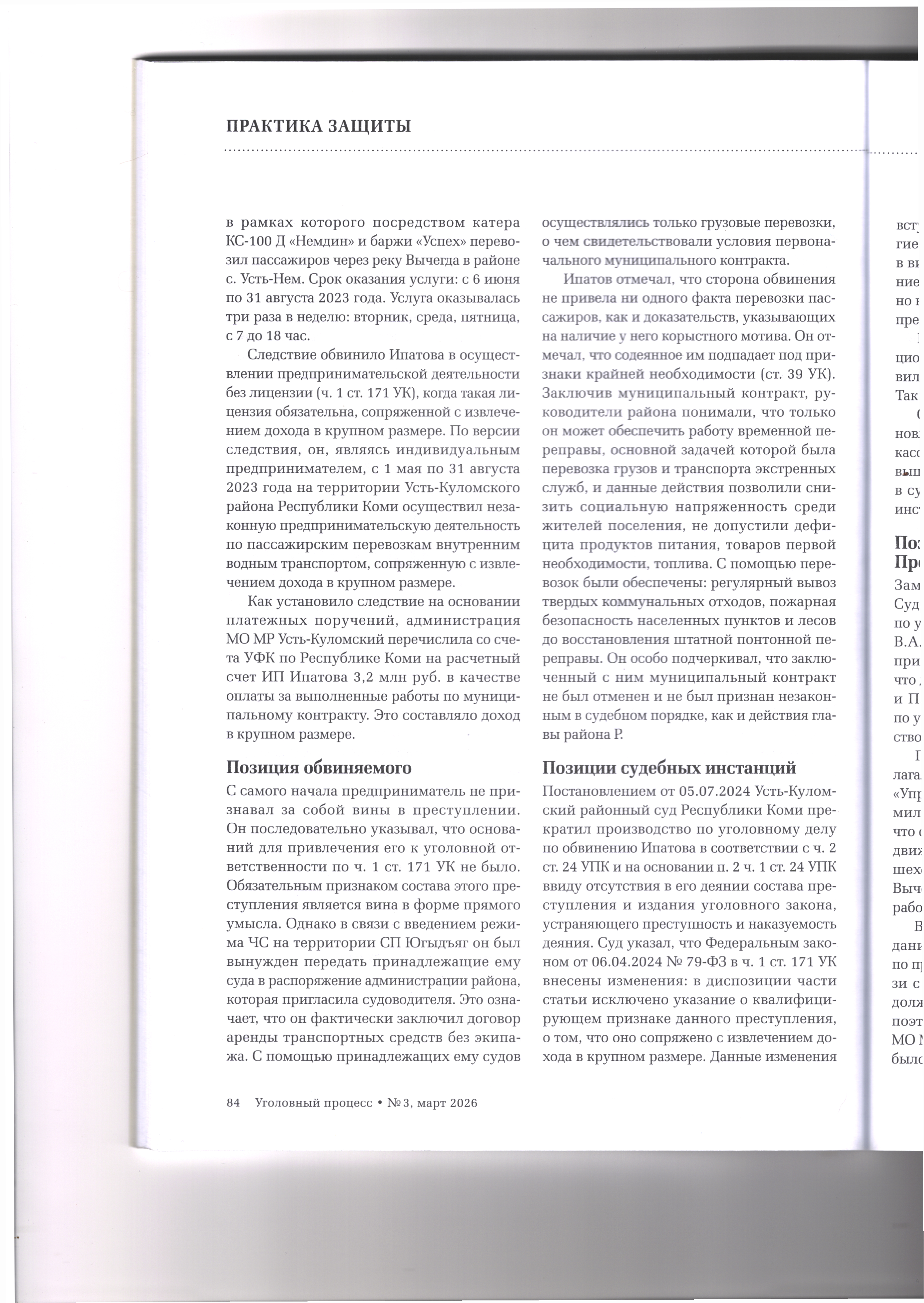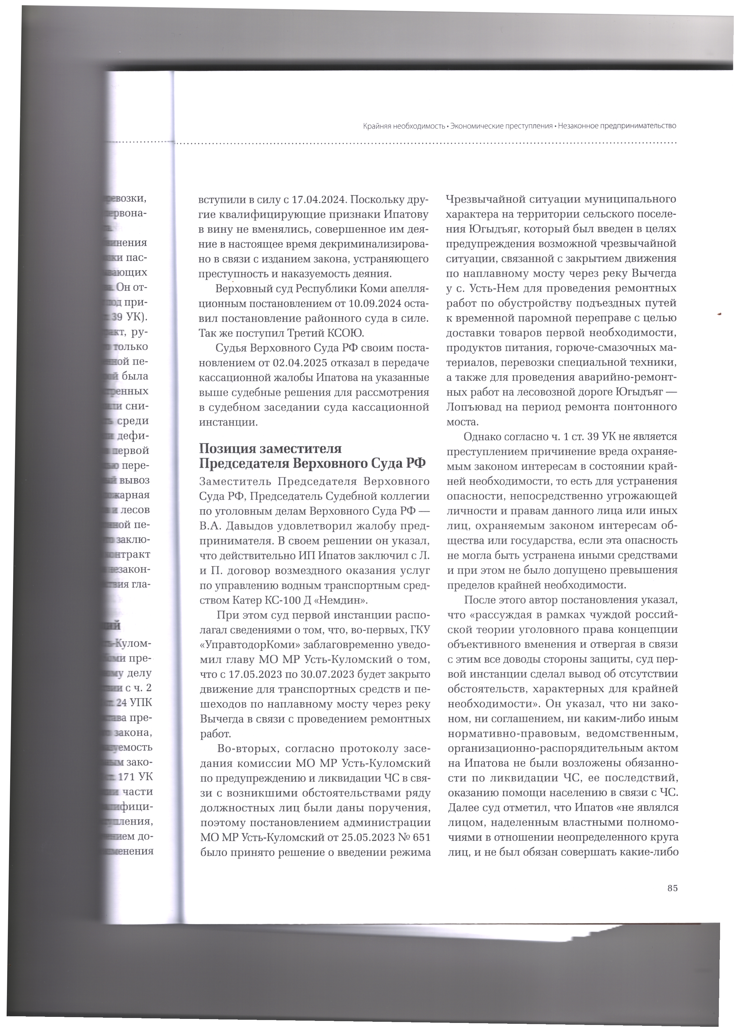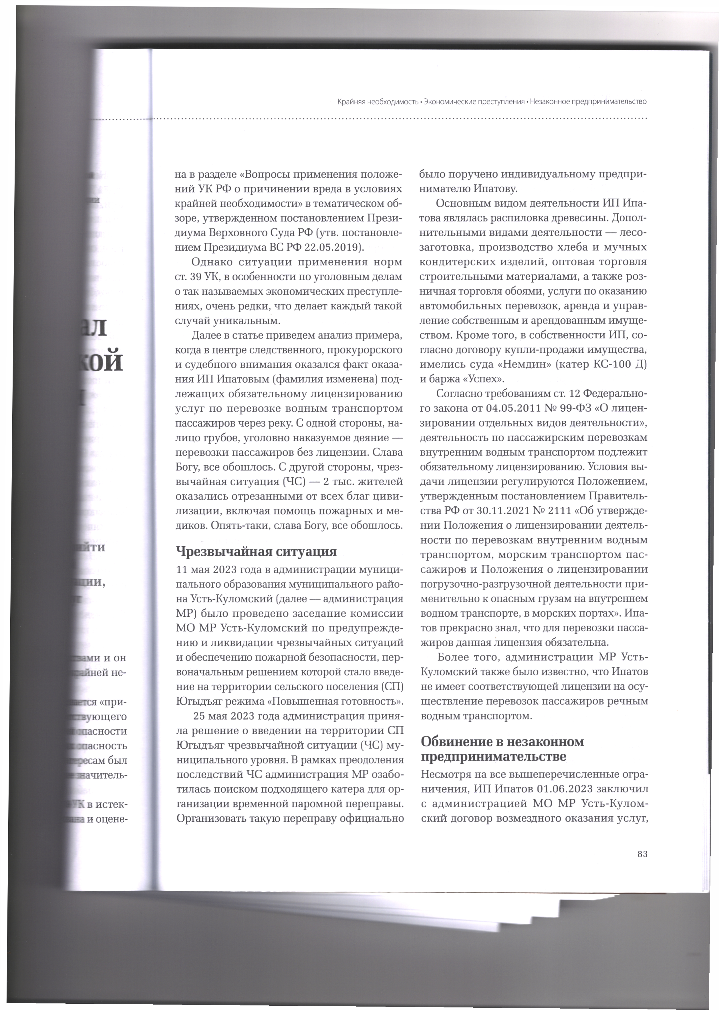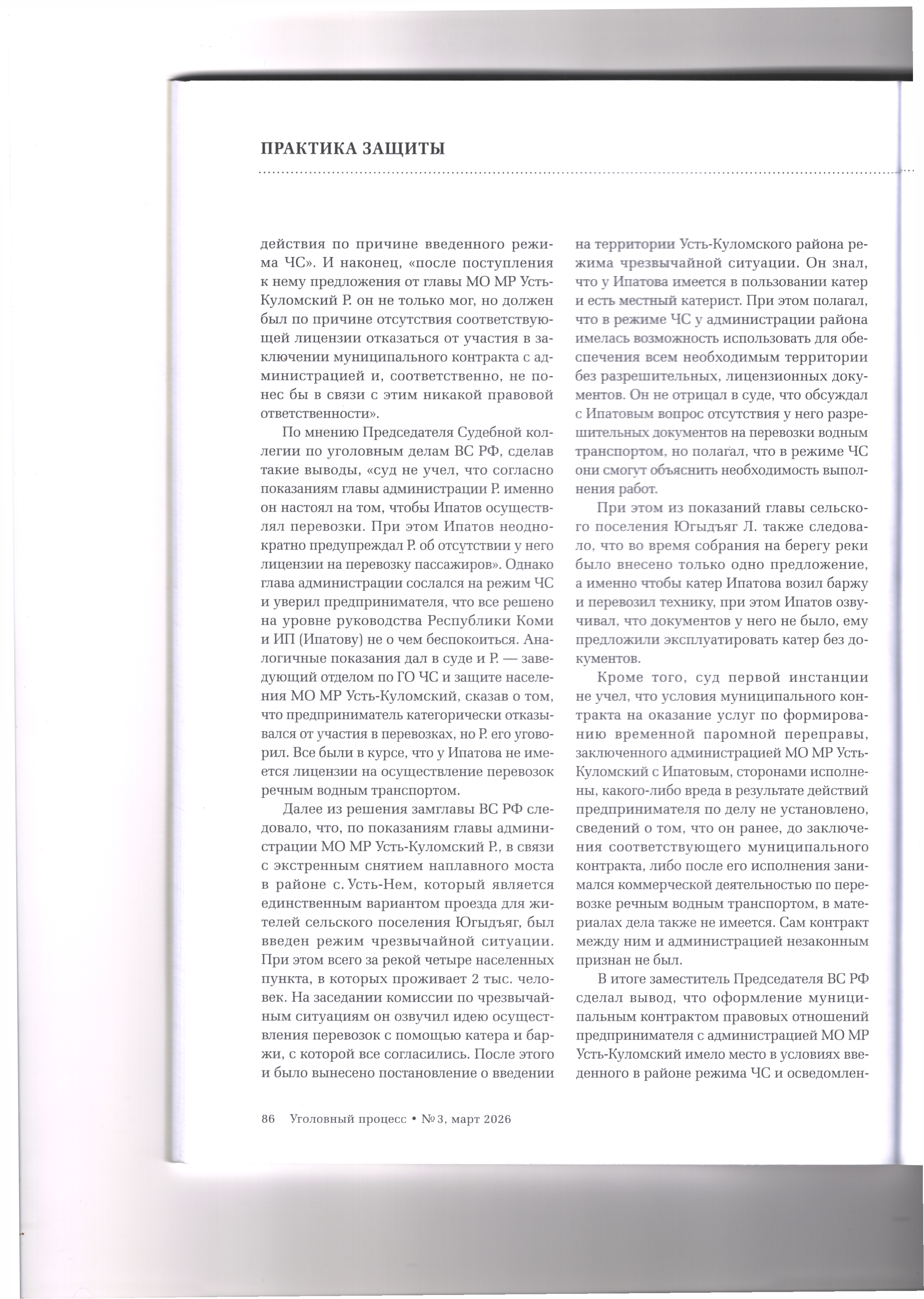 29.04.2026 Верховный Суд РФ оправдал предпринимателя со ссылкой на то, что он оказал услуги перевозки в условиях крайней необходимости Журнал «Уголовный процесс»№3/2026