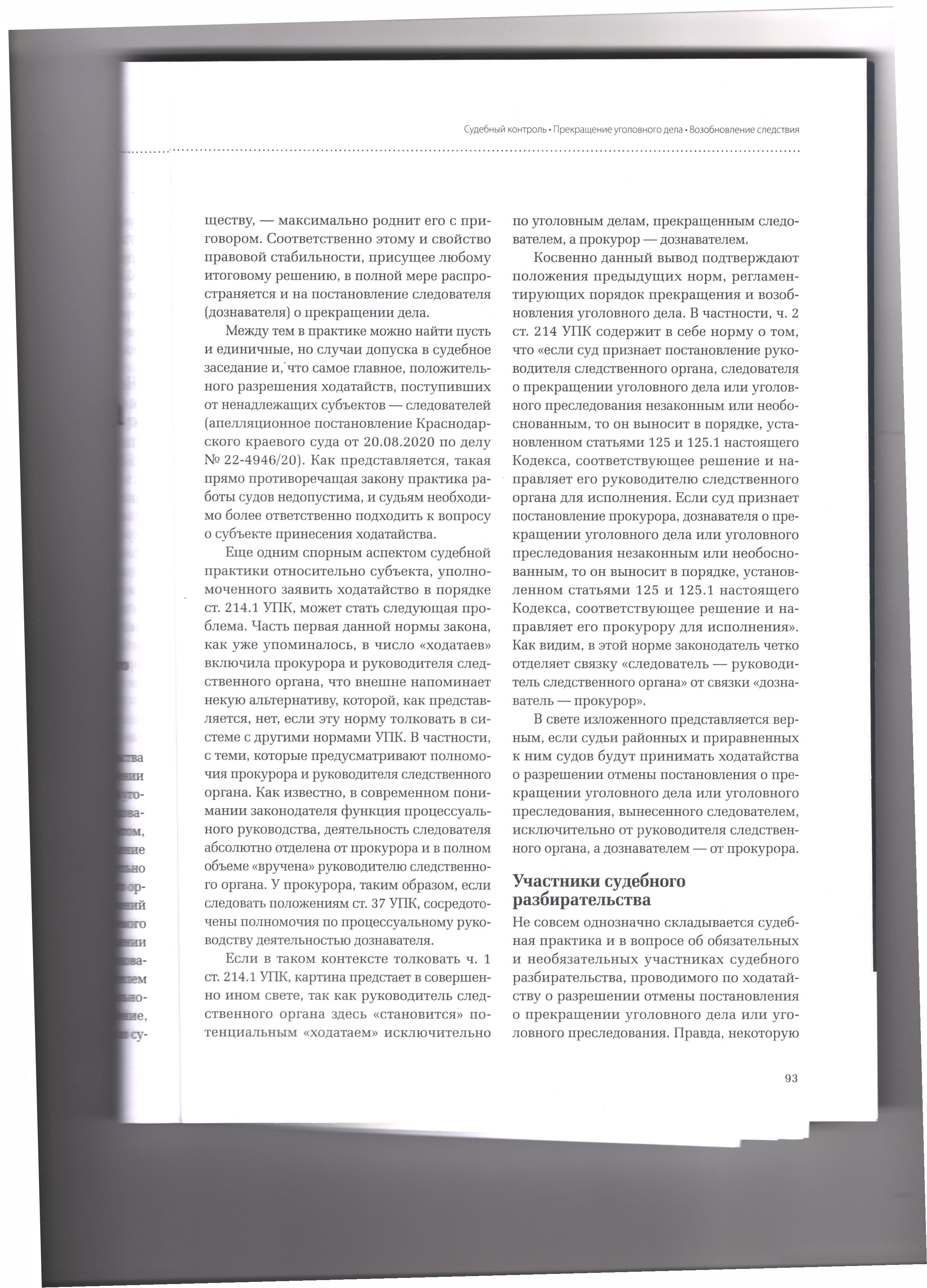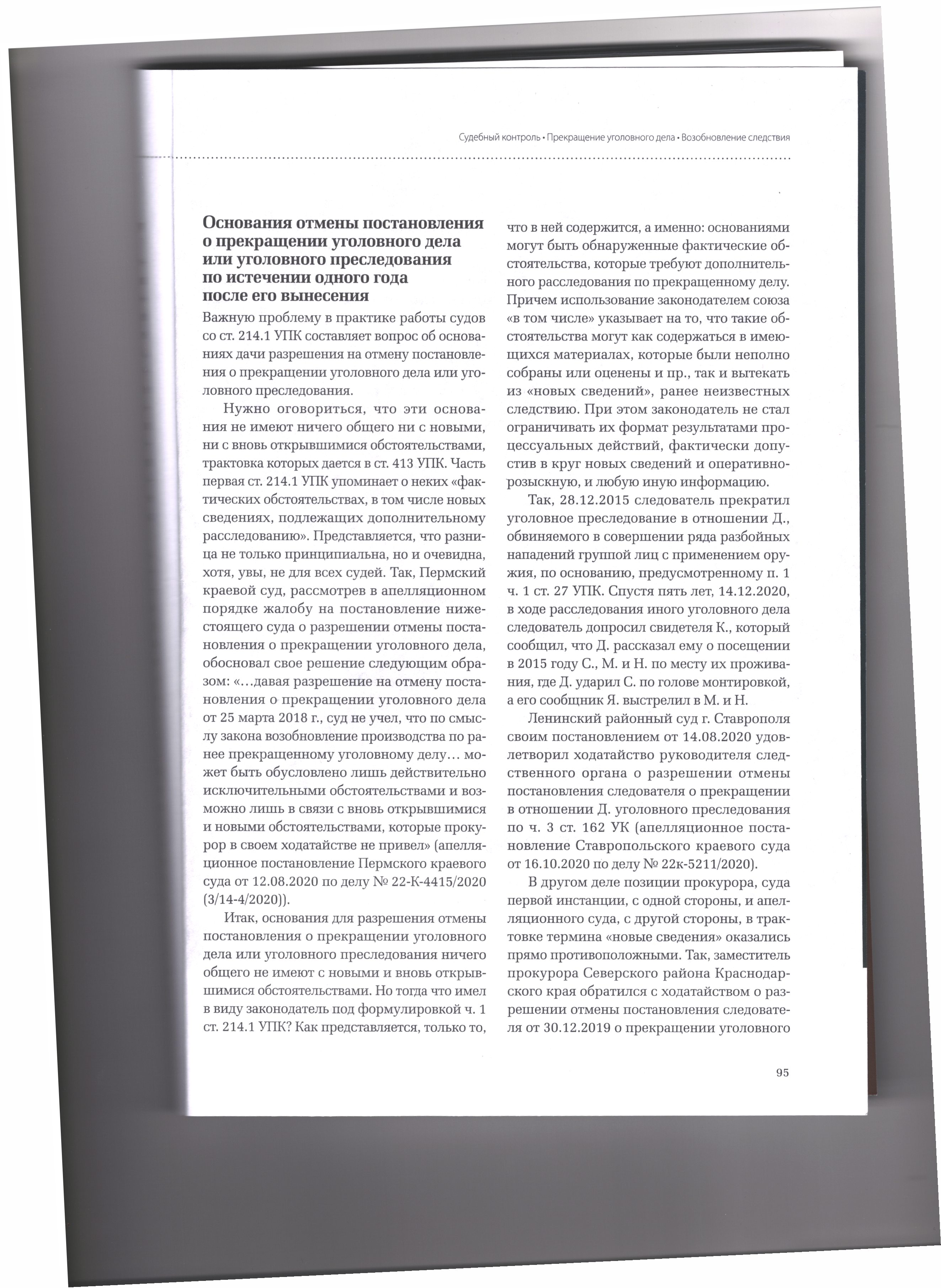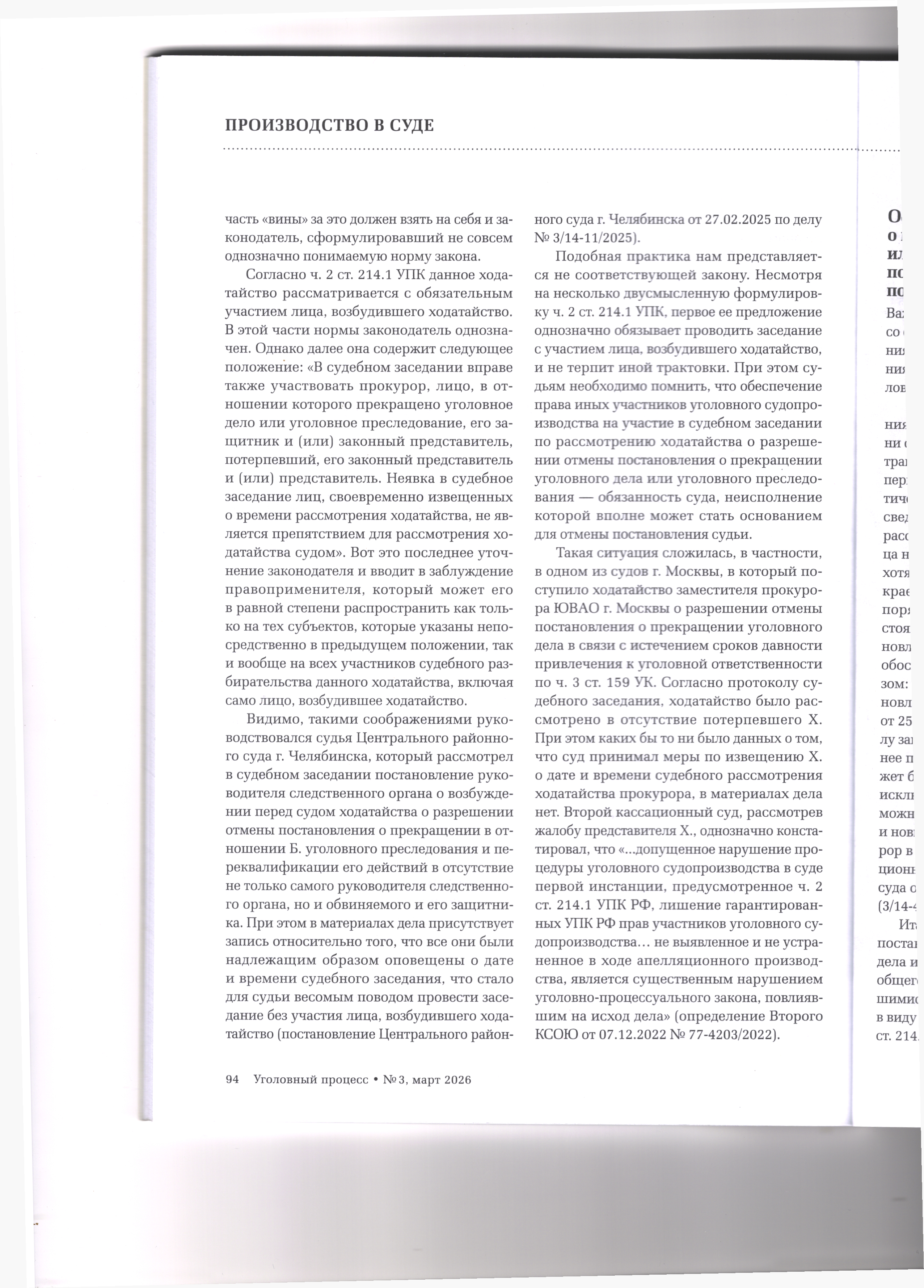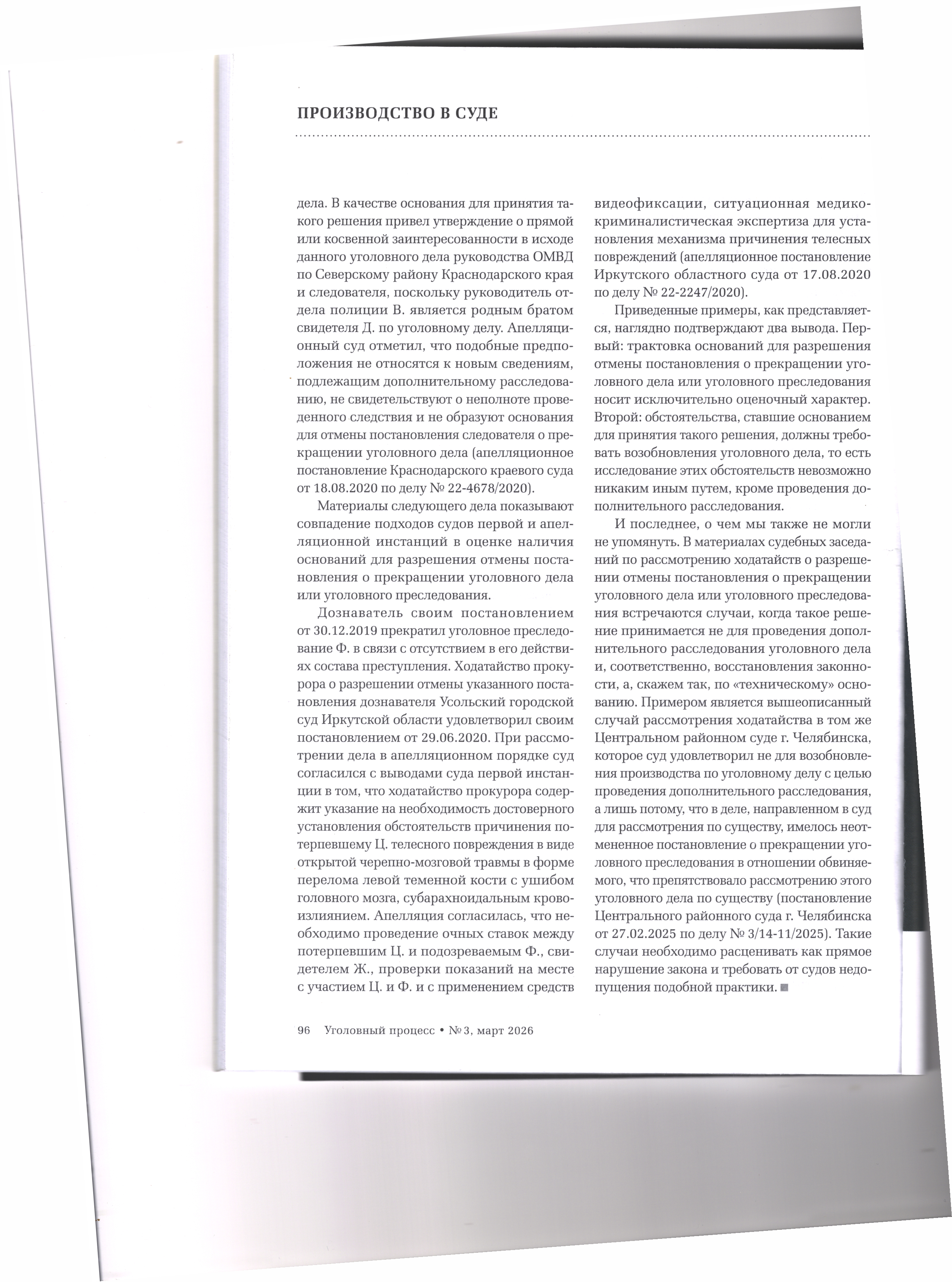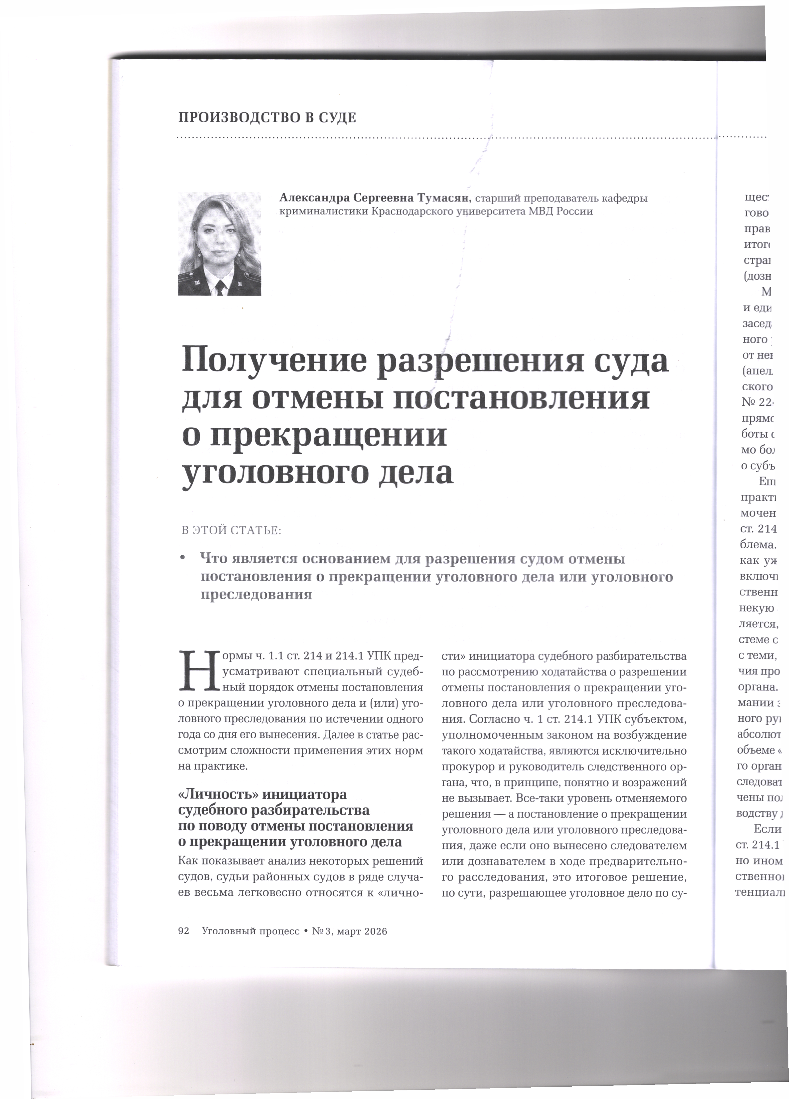 версия для печати 29.04.2026 Получение разрешения суда для отмены постановления о прекращении уголовного дела Журнал «Уголовный процесс» №3/2026